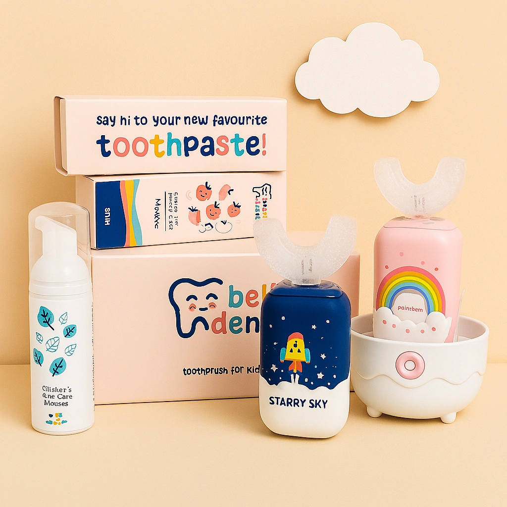 A Belli Denti egy kétoldalas, félkör alakú gyermekek számára létrehozott szilikon fogkefe, amely klinikailag bizonyítottan tisztítja a fogak minden részét (beleértve a fogak nyelv felőli, belső felszínét, egészen a nagyőrlőfogakig). Kialakításának köszönhetően a fogkefe minden része egyidejűleg működik, és 20 hagyományos fogkefe hatását fejti ki, így a fogmosás ideje mindössze 30 másodpercre csökken.